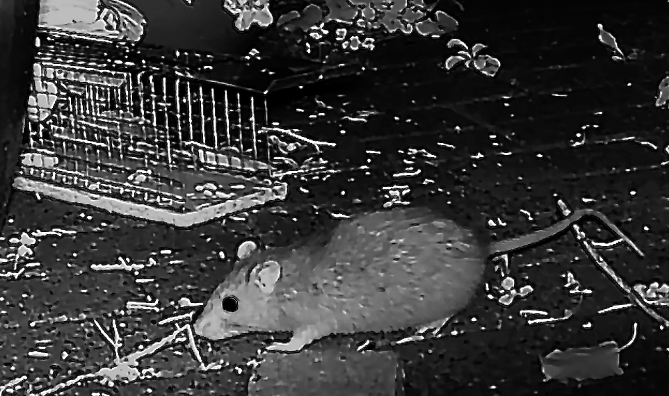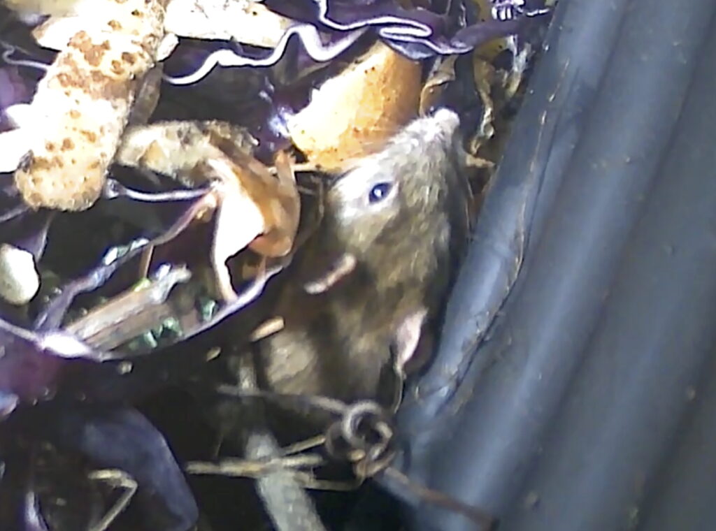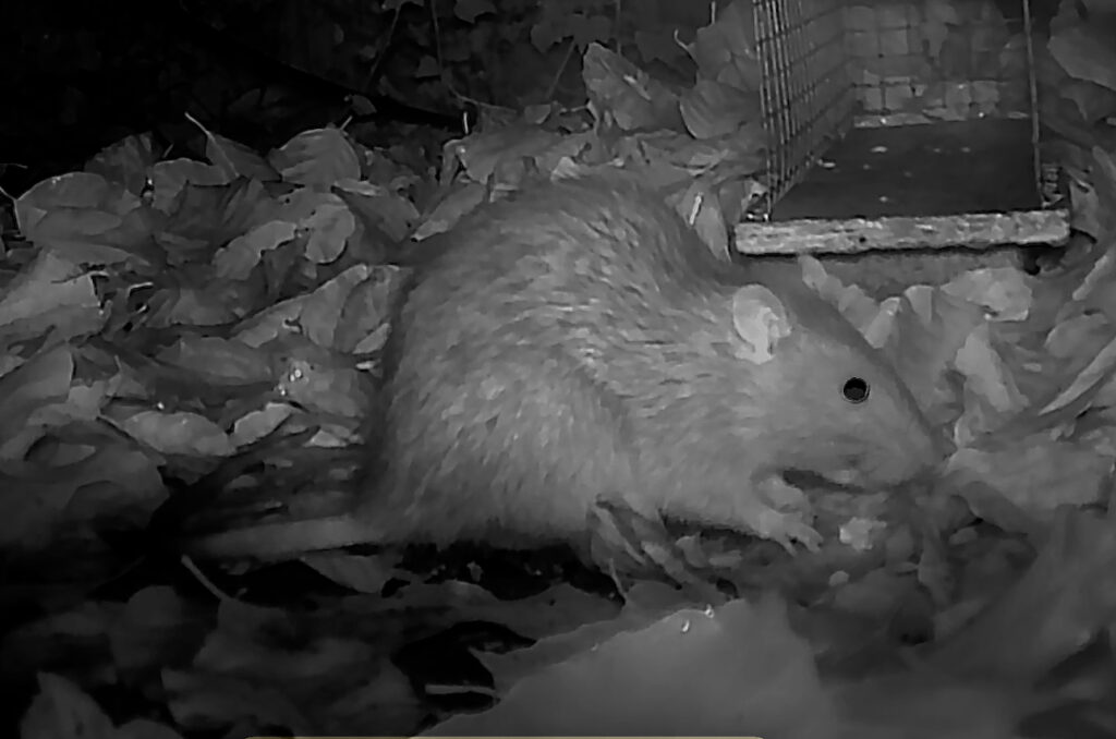 Die Wildkamera filmte weiter die Ratte. Ich lernte von den Forschern: Die Größe der Population wird von Nahrungsangebot bestimmt. Wir schließen die Mülltonnen sorgfältig und haben die Vogelfütterung weitgehend eingestellt. Für das Erstarken einer Rattendynastie wird es also nicht reichen.
